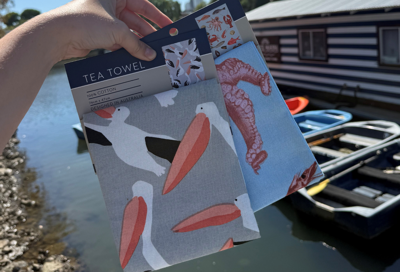 Alongside our plush range, we’ve introduced beautiful tea towels, oven glove sets, and local jewelry, with stubby holders, hats, and water bottles joining the lineup soon. Each item reflects our commitment to quality, sustainability, and the coastal lifestyle that makes the Tweed region so special. 100% Cotton Tea Towels