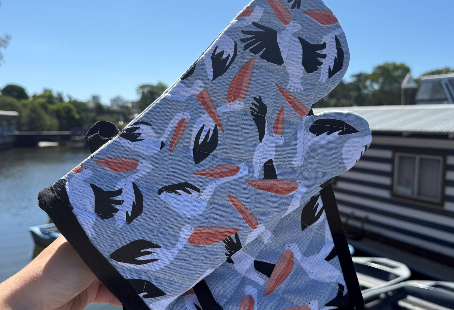 You’ll find our eco-friendly products onboard Tweed Eco Cruises, in our office, and available to purchase online. Whether souvenir hunting after a scenic river cruise or shopping for sustainable gifts, our new retail range makes it easy to support eco-conscious tourism right here in Northern NSW. Pelican Oven Glove Set